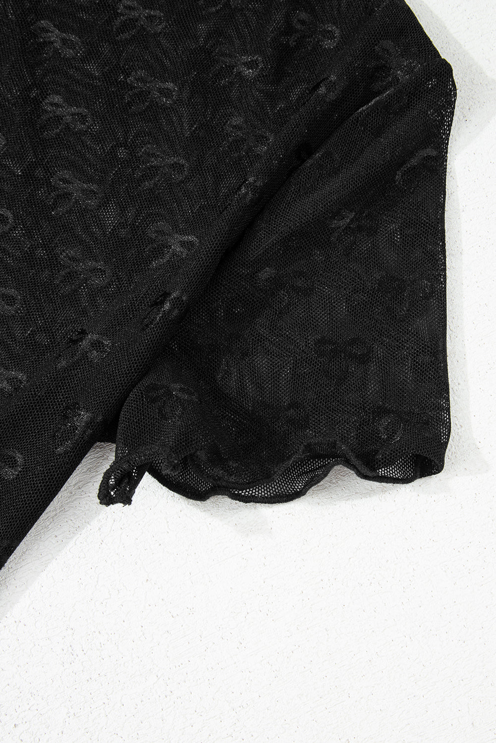 Bow Sheer Mesh Mock Neck Short Sleeve Top