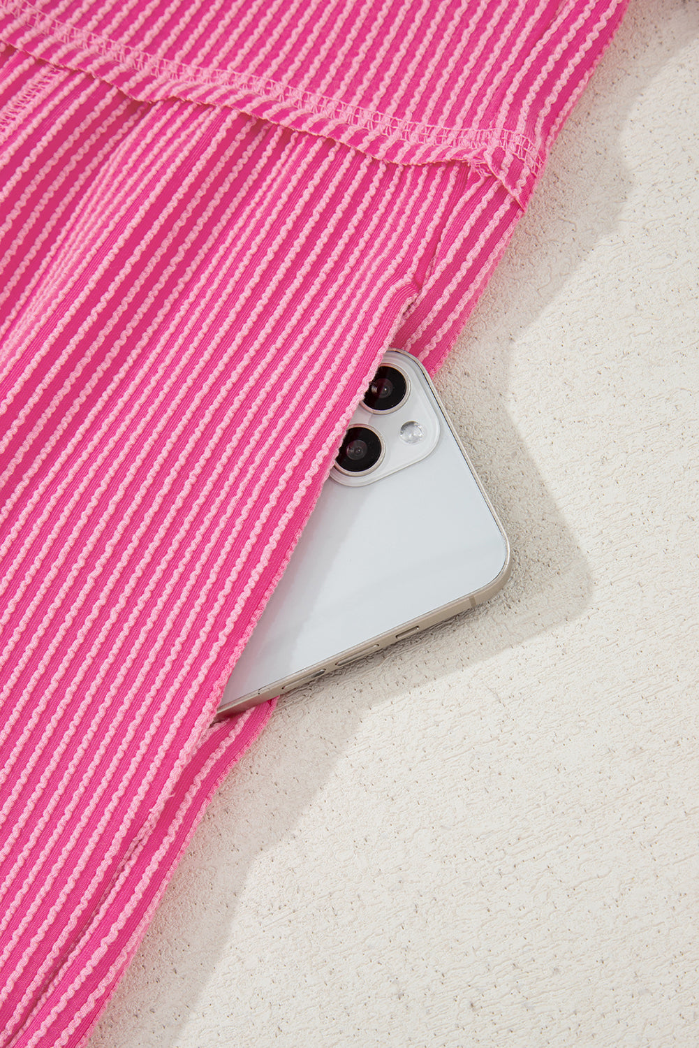 Comfy, cute, and effortlessly cool — this textured waffle-knit romper is your new warm-weather go-to! Featuring functional buttons, roomy front pockets, and a relaxed fit, it’s perfect for lounging, brunching, or running errands in style. The vibrant pink hue adds the perfect pop, while the soft fabric keeps you cozy all day long. Pair with sneakers or sandals for an easy-breezy look!