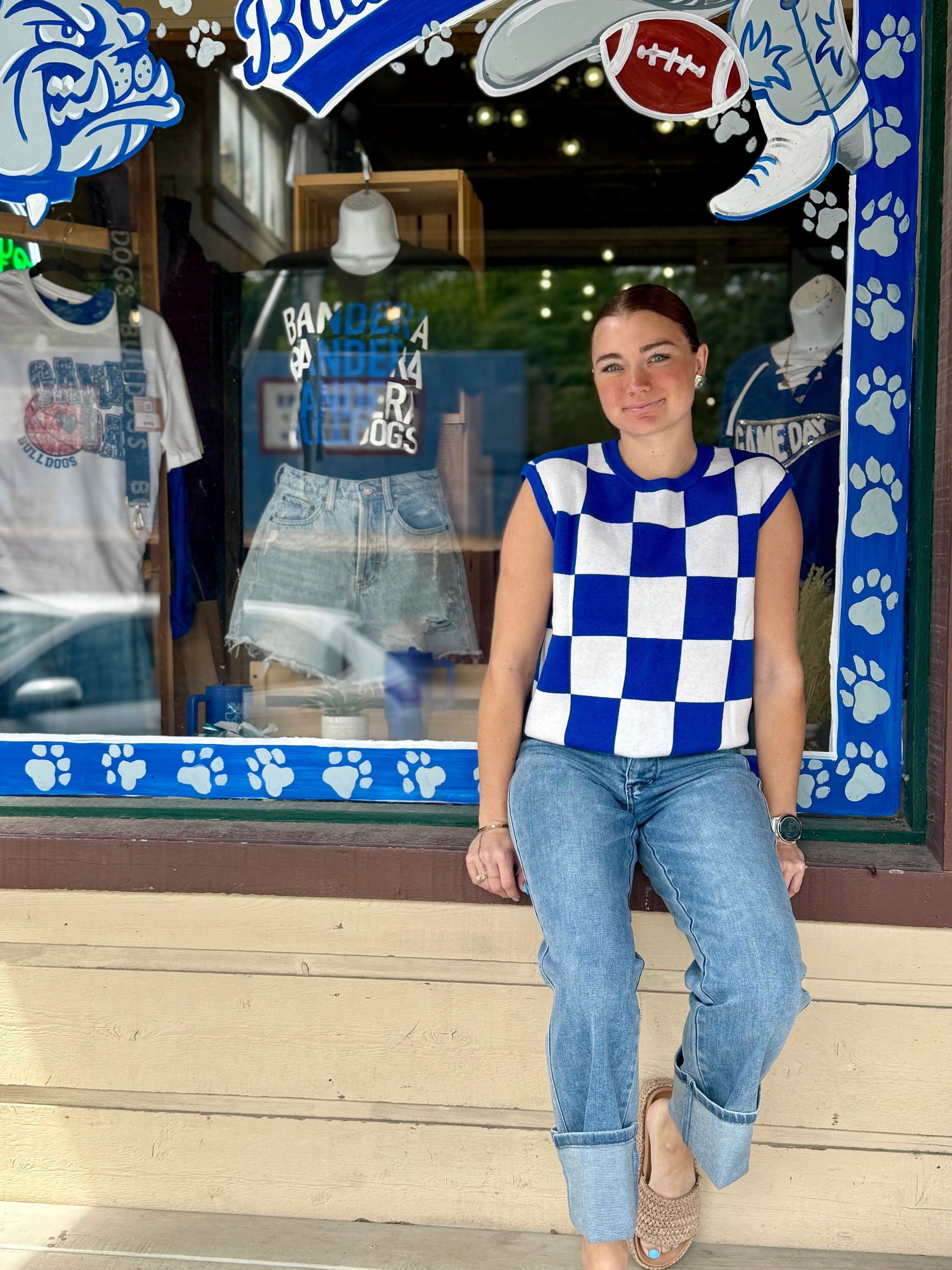 Dark Blue Cherckerboard Round Neck Sweater Vest