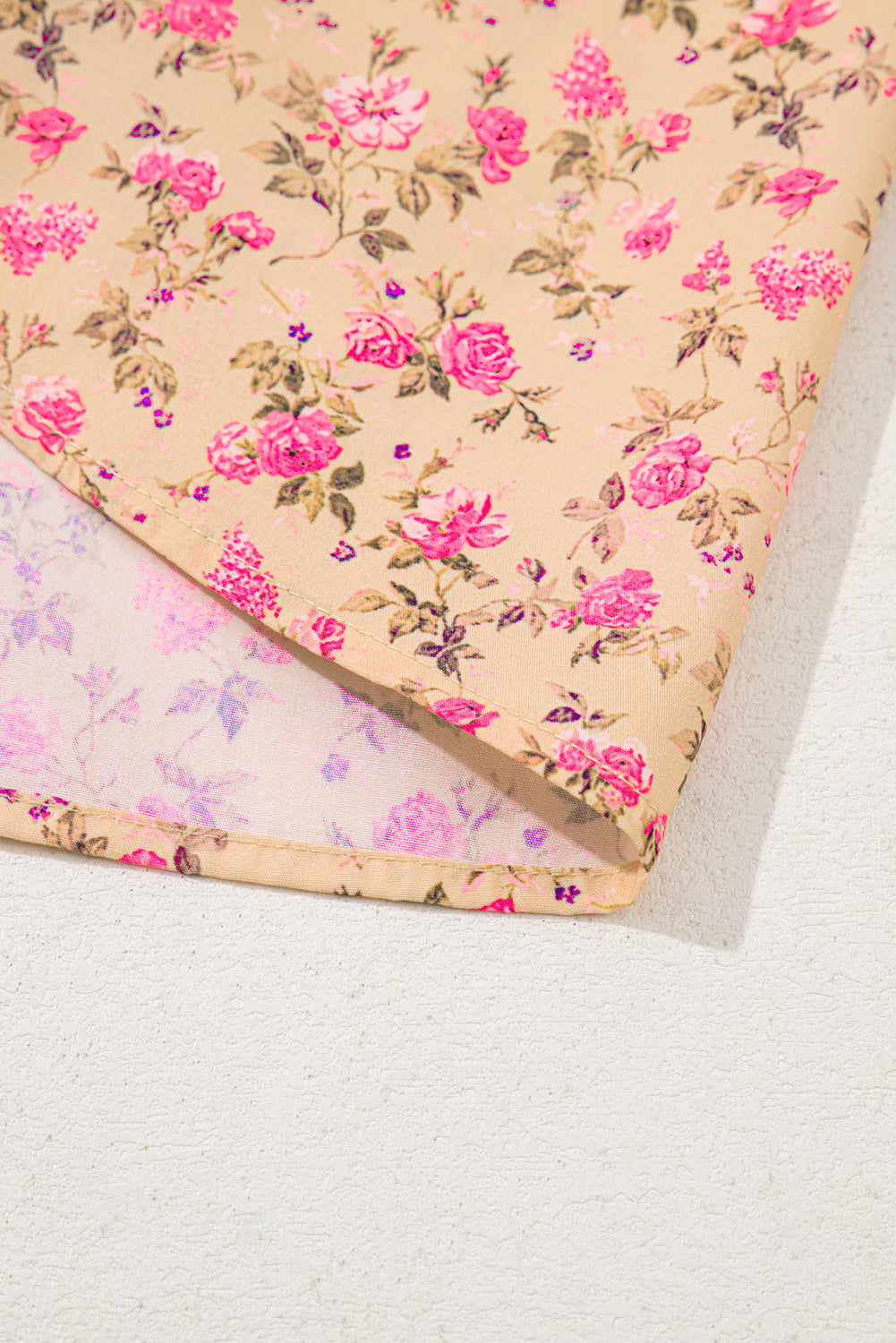 Floral Print Bow Pintuck Bust Half Puff Sleeve Blouse