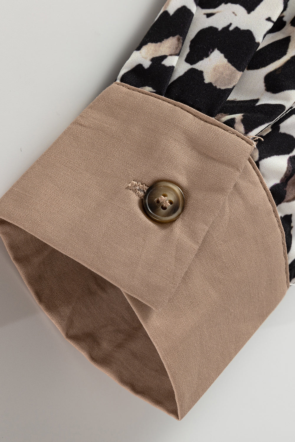 - The contrast button striped collar and sleeve cuffs add extra chic detail.
